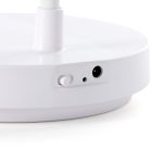 Luminária articulável em led recarregável e funcionamento touch, material plástico. Contém três estágios de iluminação com regulagem de intensidade touch: luz fria (branca), luz quente (amarela) e luz mista (branca e amarela). Base com botão para ligar e desligar. Acompanha uma bateria de lítio e cabo USB para carregamento.