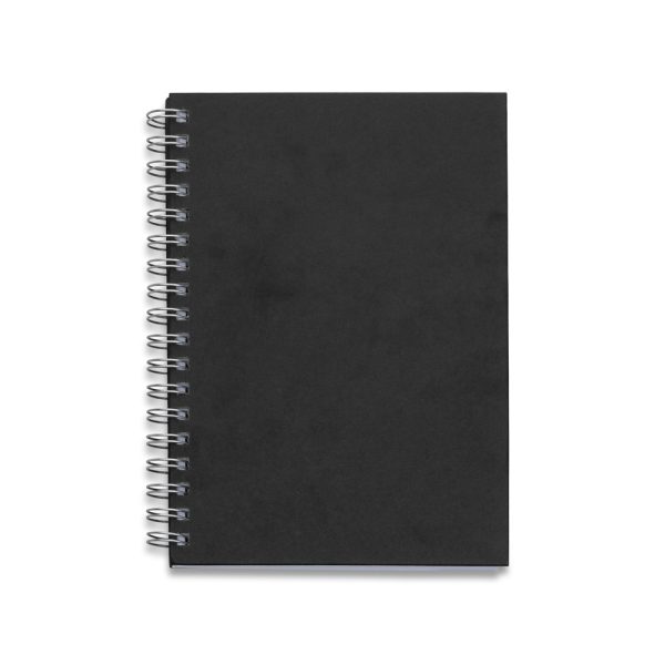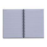 Caderno com capa kraft colorida e espiral prata metálico. Possui aproximadamente 98 folhas brancas pautadas e páginas para: dados pessoais, calendário de 2023 à 2026 e planejamento.