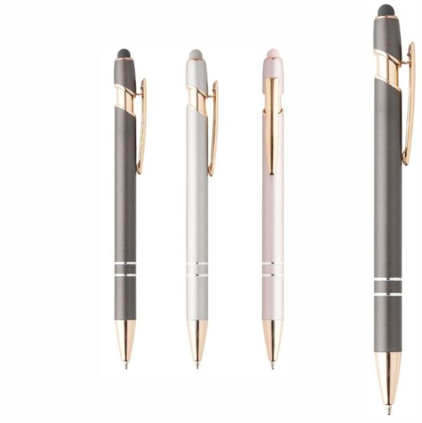 Caneta metálica touchscreen com acionamento por clique, carga esferográfica azul 1.0mm.