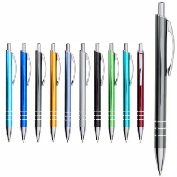 Caneta metálica, acionamento por clique e carga esferográfica azul 1.0mm.