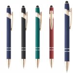 Caneta metálica com carga esferográfica azul 1.0mm e acionamento por clique.