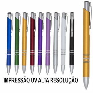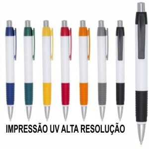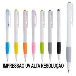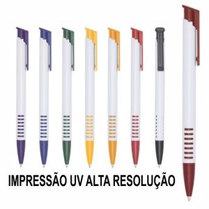 • Descrição: Caneta plástica com carga esferográfica azul e acionamento por clique.OBS.: PEDIDOS MÍNIMO DE 50 PEÇAS!Medidas aproximadas para gravação (CxL):  3,5 cm x 1 cm