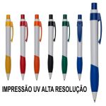 • Descrição: Caneta plástica com carga esferográfica azul e acionamento por clique.OBS.: PEDIDOS MÍNIMO DE 50 PEÇAS!Medidas aproximadas para gravação (CxL):  3,5 cm x 1 cm