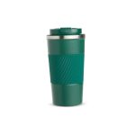 Copo térmico em inox 304 com pintura eletrostática e capacidade de até 500ml. Possui parede dupla, vedação a vácuo e base emborrachada antiderrapante. Conta ainda com tampa rosqueável em plástico com trava no bocal e luva removível em silicone.